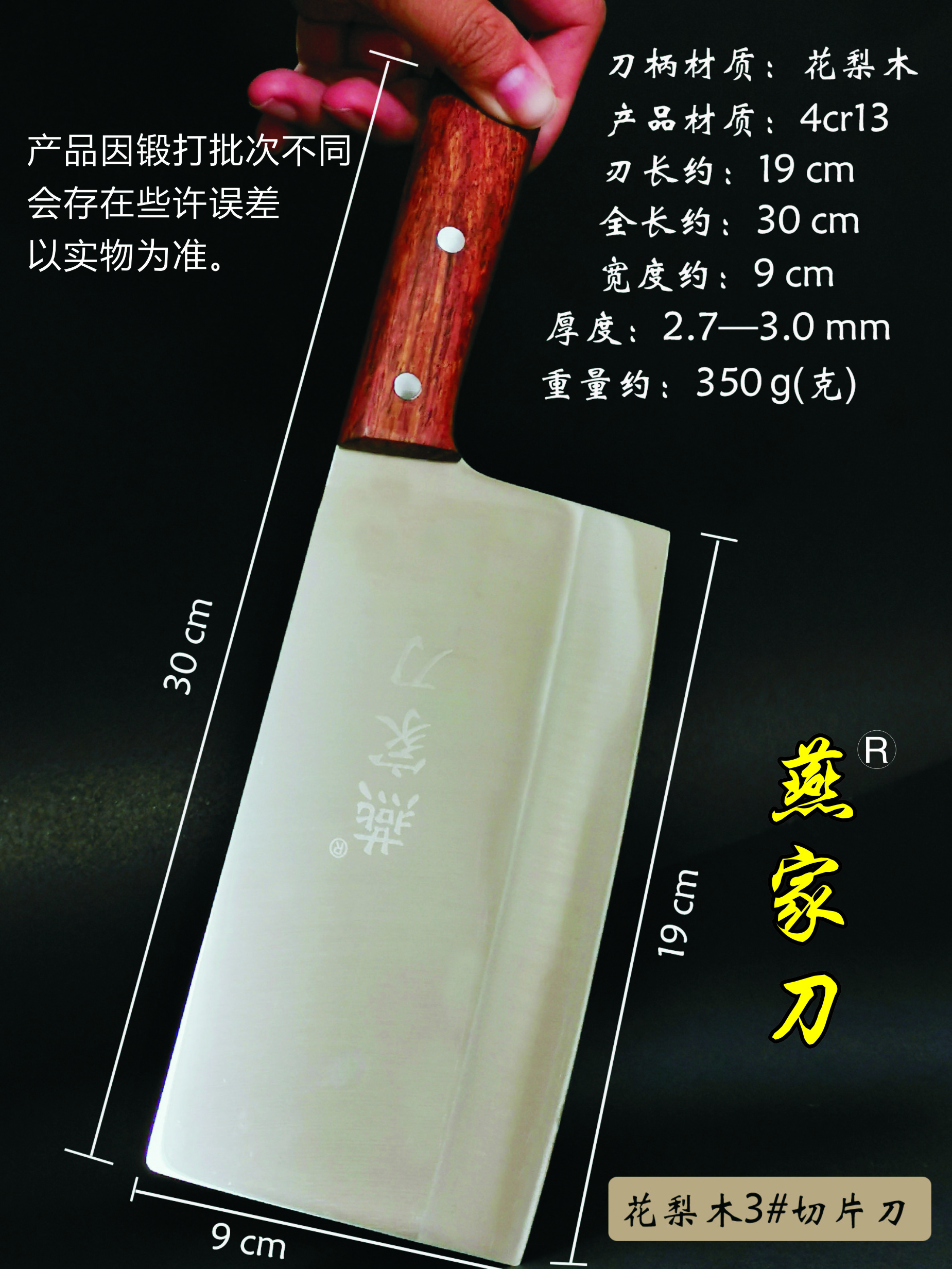樂(lè)山燕家刀具有限公司(公司前身為燕佳鐵匠鋪),公司坐落于美麗的佛都之鄉(xiāng)樂(lè)山嘉州,在全國(guó)各地有上千家代理經(jīng)銷(xiāo)點(diǎn),公司專(zhuān)業(yè)銷(xiāo)售、設(shè)計(jì)、制作各類(lèi)刀具。秉承一貫鍛造三精要求,即選料精、用料精、工藝精。所選材料全部產(chǎn)自滇東鐵礦優(yōu)產(chǎn)區(qū)。本品牌刀具堅(jiān)持千挑萬(wàn)選為材,千錘百煉為刀的手工鍛造工藝宗旨。具有鋒利耐磨、持久耐用,用料上乘,硬度高、韌度強(qiáng)的特點(diǎn)!